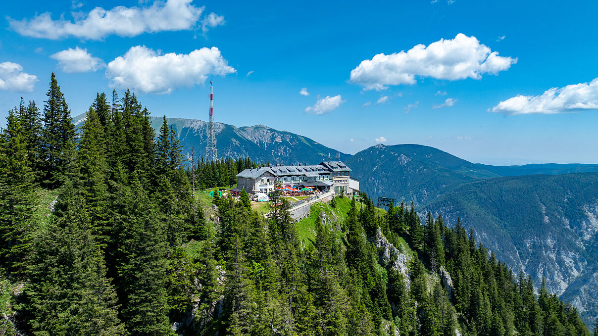 Wandern, staunen, entdecken – und Kultur erlebenAuch ohne den 2.007 Meter hohen Gipfel zu erklimmen, lohnt sich eine Wanderung über das Rax-Plateau allemal. Die Raxalpe ist ein geschütztes Wasser- und Naturreservat, in dem man mit etwas Glück Gämsen oder Murmeltiere entdecken kann – mitunter zeigt sich sogar ein majestätischer Steinadler. Beliebte Wegpunkte sind der „Balkon“ mit seinem eindrucksvollen Blick ins Höllental, das markante „Törl“ aus Fels sowie der farbenfrohe Alpengarten, der rund 200 Pflanzenarten beherbergt. Was heuer nicht zu kurz kommt, sind kulturelle Höhepunkte am Berg: